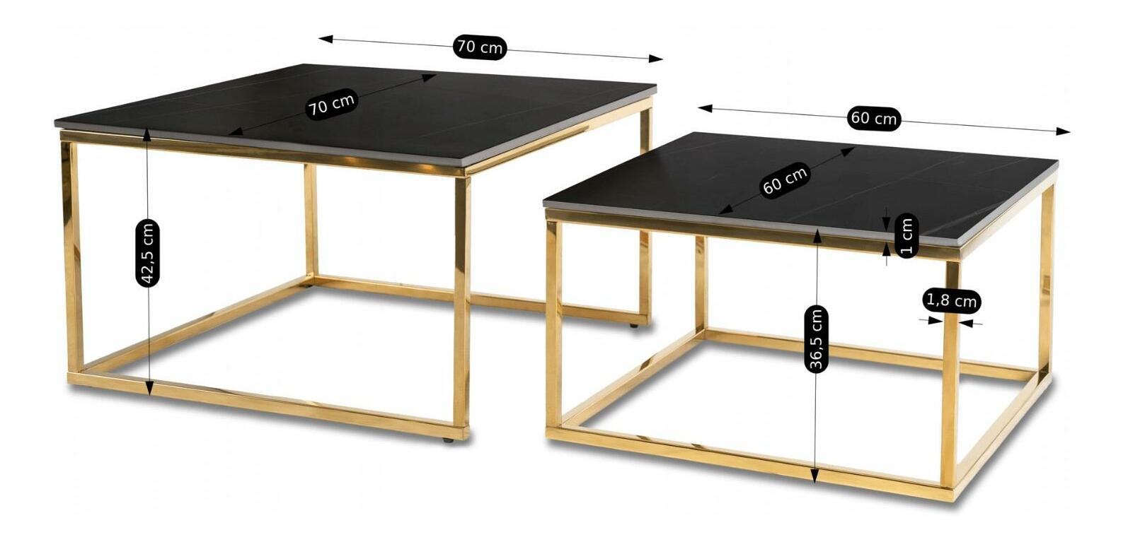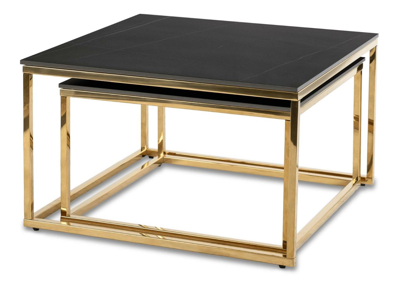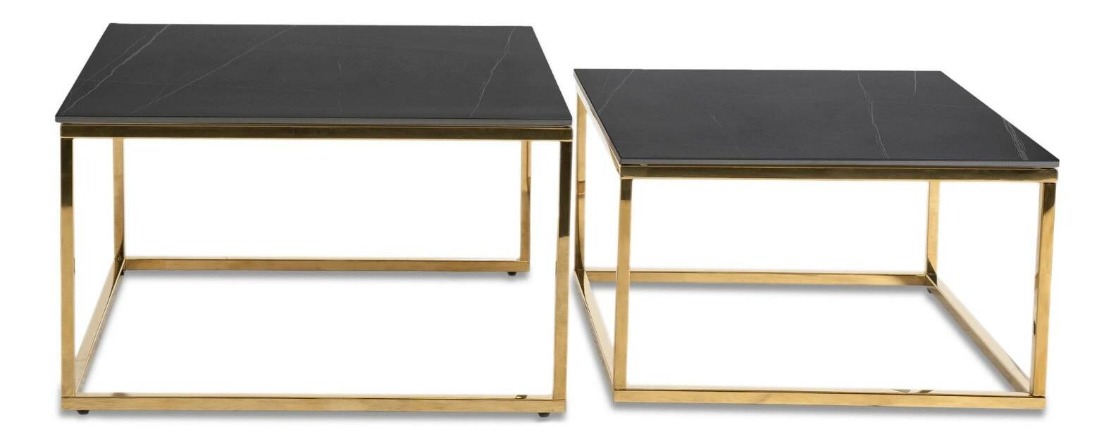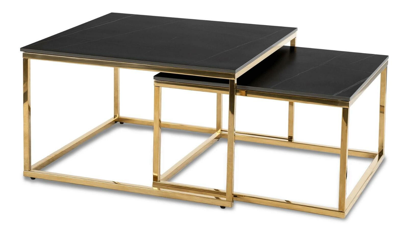 Set 2 konferenčních stolků Texarkana (mramor černý + zlatá)
