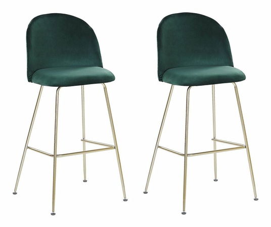 Každá jídelna potřebuje pohodlné židle, které zlepší vzhled celé místnosti. Tato sada dvou barových židlí je čalouněna jemným sametem. Hrubá sedadla a odolná ocelová konstrukce v kontrastní zlaté barvě zaručují pohodlí a stabilitu a v kombinaci s čalouněním v nádherné tmavě zelené barvě vytvářejí okouzlující design.
