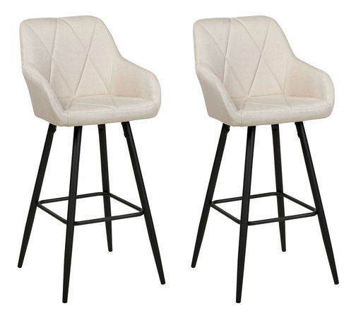Tato dokonalá sada barových židlí doplní jídelnu nebo kuchyni zařízenou v moderním, klasickém či retro stylu. Látkové čalounění je zvýrazněno diamantovým prošíváním, které zdokonaluje vizuální design židlí. Štíhlé černé nohy vyrobené z kovu s práškovou povrchovou úpravou jsou doplněny opěrkou pro nohy, která zvyšuje komfort během sezení.