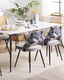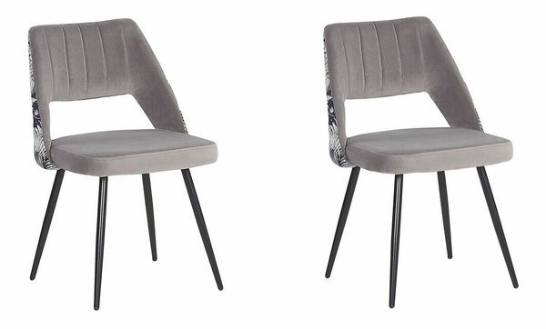 Tato sada čalouněných židlí je elegantním doplňkem do každého moderního a tradičně zařízeného interiéru. Sedák a tvarované opěradlo doplňují štíhlé černé nohy, díky kterým židle nepůsobí robustně a nabízí vynikající komfort během sezení. Opěradla mají ozdobné prošívání a poutavý květovaný vzor. Siluetu židlí ve vintage stylu dokonale zvýrazňuje sametové čalounění.