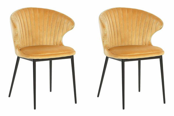 Tyto židle jsou kombinací designu inspirovaného retro stylem, industriálních tvarů a výrazných barev. Široké prošívané opěradlo ve tvaru mušle se sametovým čalouněním kontrastuje s černýma kovovými nohami a výrazným prošíváním a vytváří poutavou kompozici. Židle jsou ideální pro použití v jídelně, jako doplněk k toaletnímu stolku nebo jako designový prvek do jakékoli místnosti.