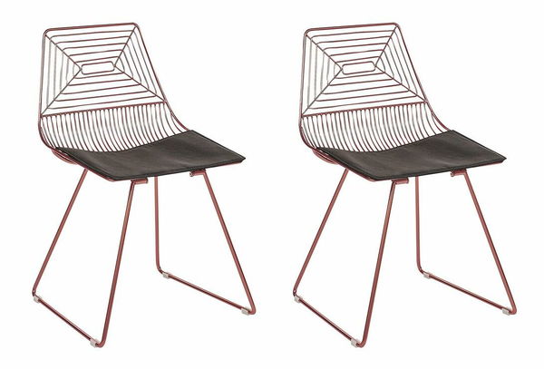 Tato sada židlí z pevného kovu s růžovozlatou povrchovou úpravou působí luxusně a elegantně a každé místnosti dodá nádech industriálního půvabu. Sedací polštáře potažené elegantní černou umělou kůží nabízí příjemné sezení a design opěradel, který je velmi zajímavým detailem, poskytne páteři oporu. Tyto elegantní jídelní židle v okamžiku zkrášlí zařízení vaší jídelny nebo kuchyně.