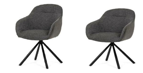 Šedá čalouněná židle vyniká kombinací barev a potahových materiálů na sedáku & opěradle a bocích. Židle dodává interiéru šmrnc a originalitu. Odolné látkové čalounění slibuje pohodlí a dlouhou životnost. Kovové nohy zajišťují stabilitu a moderní vzhled. Díky otočné funkci L90°/P90° s vratným mechanismem snadno přizpůsobíte směr sezení svým potřebám. Područky poskytují extra komfort při delším sezení, ideální pro pracovny nebo obývací pokoje.
