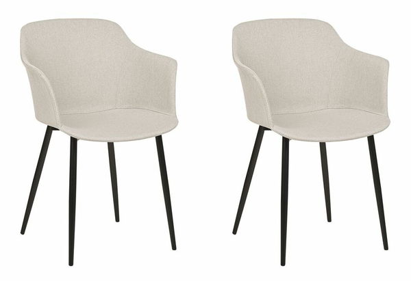 Tato sada čalouněných židlí se stane ozdobou vaší jídelny. Židle jsou čalouněny odolným a na údržbu nenáročným polyesterem, takže budou zdobit váš domov dlouhá léta i bez každodenní údržby. Světlá béžová barva v kombinaci s černýma nohama zvýrazňuje moderní vzhled židlí, díky čemuž se budou skvěle hodit k různým stylům interiérového zařízení – od moderního až po retro.