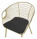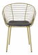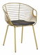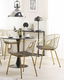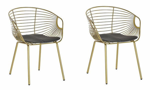 Židle inspirované industriálními tvary výborně ladí se širokou škálou moderních interiérových stylů. Jsou vyrobeny z pevného a odolného kovu a mohou se pochlubit klasickým drátěným designem na opěradle a sedáku. Krásný zlatý povrch a štíhlé nohy jim dodávají elegantní vzhled, díky kterému působí ještě víc okouzlující. Sedadla židlí jsou čalouněna umělou kůží v kontrastní černé barvě a nabízí výborné pohodlí během sezení.