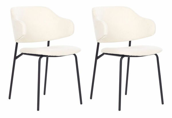Sada dvou jídelních židlí, které jsou dokonalým doplňkem k jídelnímu stolu a nabízejí styl i pohodlí. Díky svému designu bez opěrek zabírají minimum místa, takže jsou ideální do útulných jídelen. Jemně zaoblené opěradlo poskytuje ergonomickou oporu a zároveň dodá vašemu prostoru sofistikovaný vzhled. Díky jednoduchým, ale pevným kovovým nohám je zajištěna odolnost a měkké příjemné čalounění vybízí k odpočinku a vychutnávání si jídel ve stylovém interiéru.