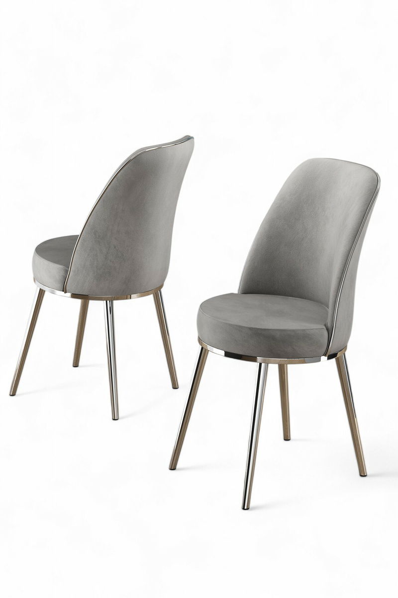 Set 2 ks. jídelních židlí Pufenda (šedá + chromová)