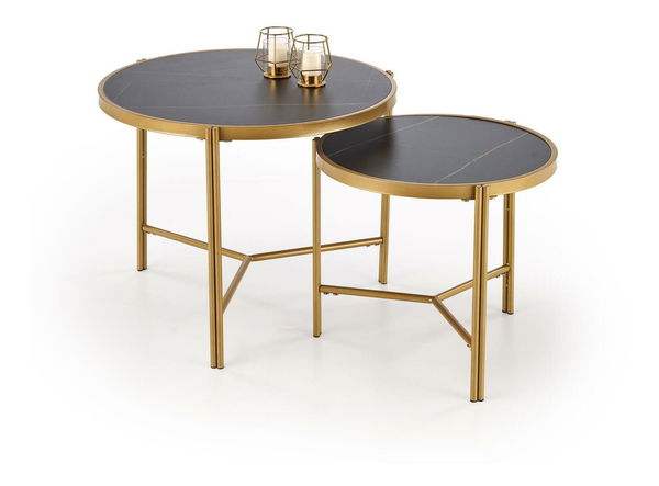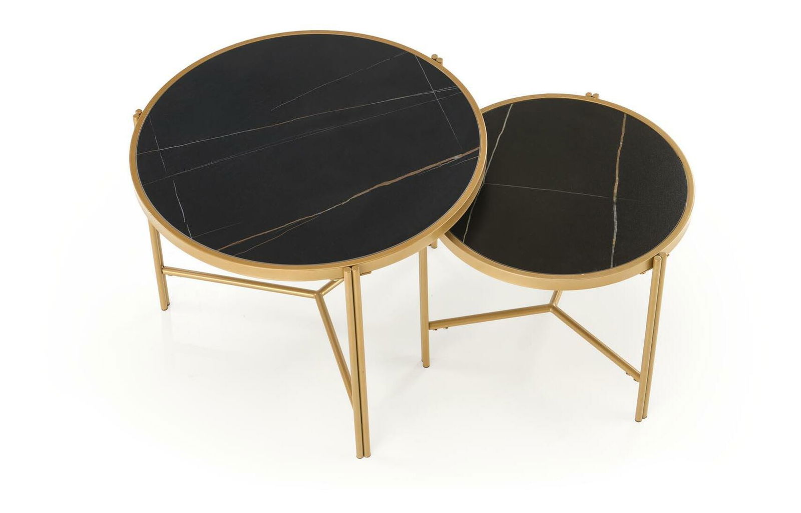 Set 2 ks. konferenčních stolků Fantoma (černý mramor + zlatá)
