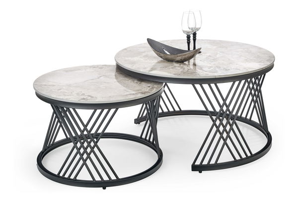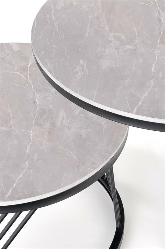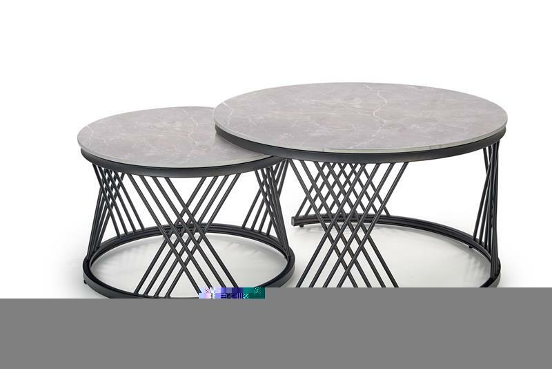 Set 2 ks. Konferenčních stolků Felecia (šedý mramor + černá)