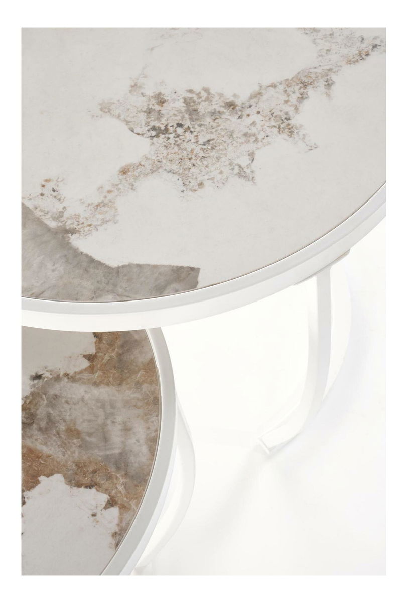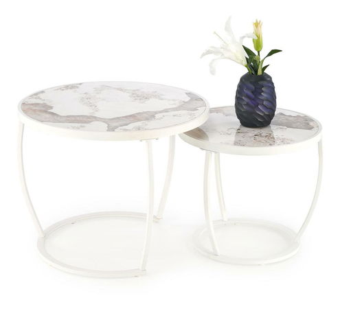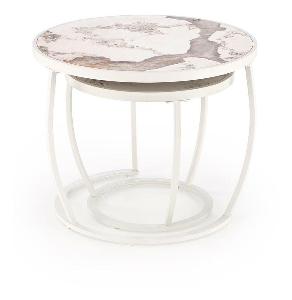 Set 2 ks. konferenčních stolků Inesz (béžový mramor + bílá)