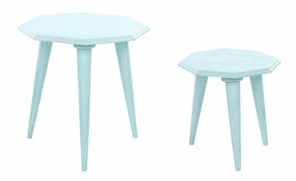 Tato sada příručních stolků bude dokonalým doplňkem každého rustikálního či vintage prostoru. Do těchto stylů se hodí zejména díky svému opotřebovaně vypadajícímu povrchu a materiálům, které byly použity k jejich výrobě. Vrchní desky jsou ručně vyrobeny z MDF, zatímco elegantní a stabilní nohy jsou vyrobeny z masivního mangového dřeva.