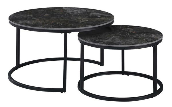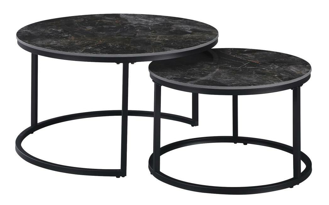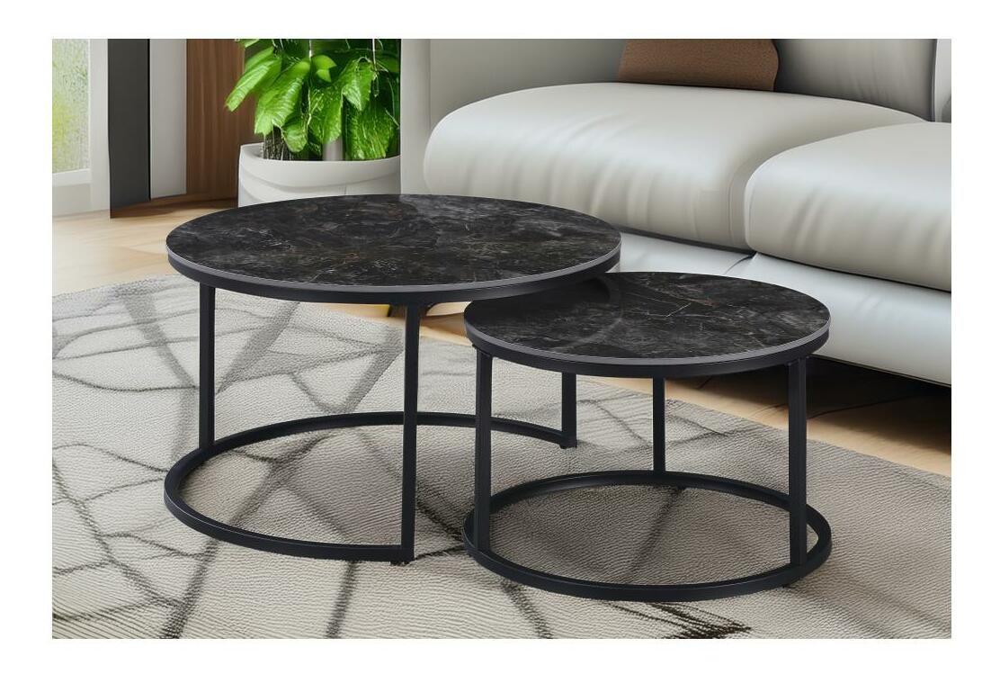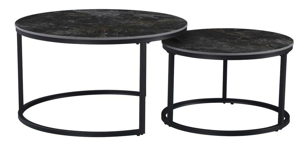 Set 2 ks konferenčních stolků Lastras (černý mramor + černá ocel)