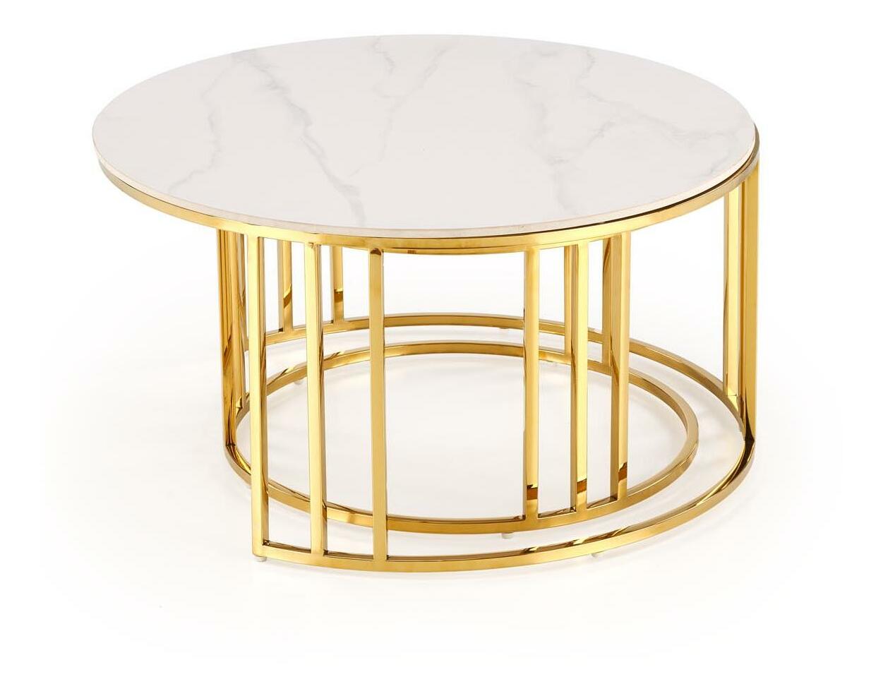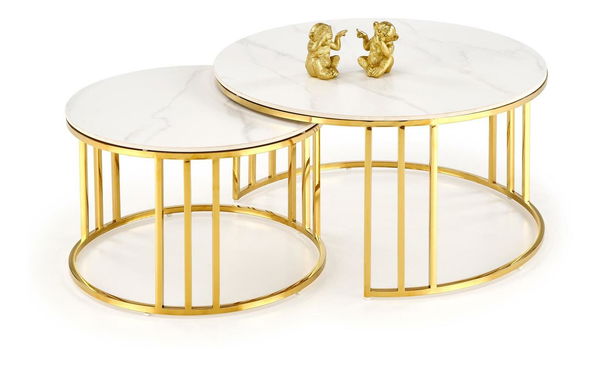 Set 2 ks. konferenčních stolků Mercu 3 (bílý mramor + zlatá)