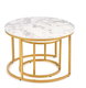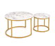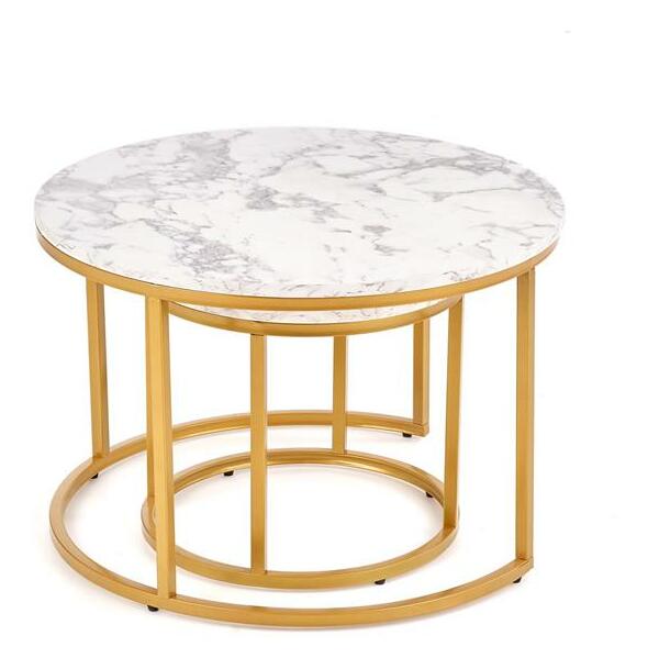 Set 2 ks. konferenčních stolků Paola jsou ideálním doplňkem pro váš obývací prostor. Tento set obsahuje dva stolky oválného tvaru, které jsou vyrobeny z kovu a MDF laminované desky. Stolky mají praktický tvar a jsou vhodné nejen jako konferenční, ale také jako příležitostné stolky. Bez poličky a bez skla jsou praktické a stylové zároveň. Materiály použité pro výrobu stolků jsou odolné a mají dlouhou životnost. Práškovaná ocelová kostra zajistí stabilitu a pevnost stolku. Větší stolek má rozměry 40 x 60 x 60 cm a menší 34 x 38 x 38 cm. Konferenční stolky Paola jsou skvělou volbou pro ty, kteří hledají jednoduché a elegantní řešení pro svůj interiér. Zkombinované s bílým mramorovým vrchem a zlatýma nohama, tyto stolky jsou krásnou a praktickou volbou do vašeho domova.