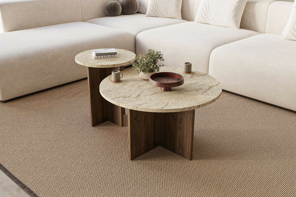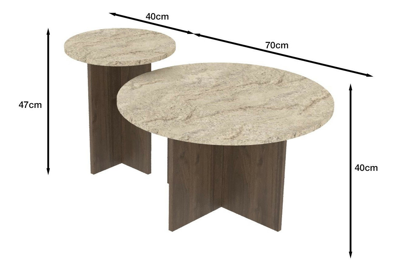 Set 2 ks. konferenčních stolků Priva (travertin + ořech)