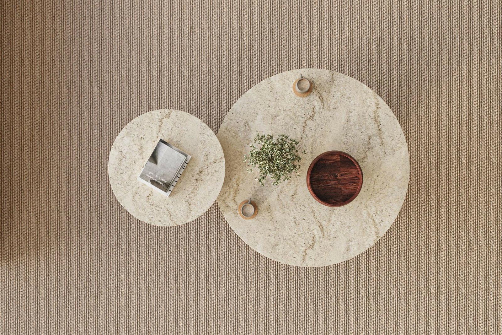 - Set 2 ks. konferenčních stolků Priva (travertin + ořech)