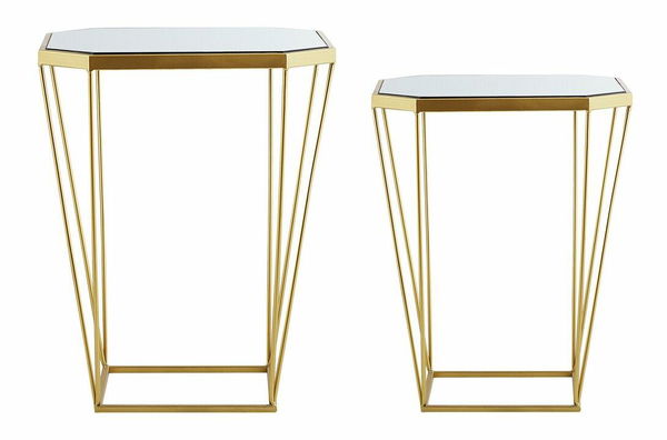 Souprava stylových konferenčních stolků dokonale doplní prázdné místo vedle pohovky nebo křesla. Nádherné stolové desky se zrcadlovým povrchem doplňuje kovová konstrukce ve zlatém barevném provedení, která působí luxusně. Stolky vypadají velmi moderně a zároveň elegantně.