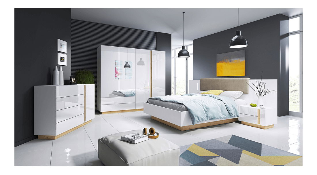 Set 2 ks nočních stolků Cethos (bílá + dub grandson + bílý lesk) je skvělou volbou pro ty, kteří hledají moderní a funkční nábytek do ložnice. Tento set obsahuje dva stolky o rozměrech 60x46x104,5 cm. Materiál DTD laminovaná/ABS hrany zajišťuje trvanlivost a odolnost, zatímco barvy bílá/dub grandson/bílý lesk dodávají stolkům eleganci a vkus. S tloušťkou materiálu 16 mm jsou stolky dostatečně pevné a stabilní pro každodenní používání. Bez úchytek as dotykovým otevíráním PUSH UP jsou stolky opravdu jednoduché na používání. Dvě zásuvky a LED osvětlení jsou další funkce, které činí tyto stolky praktickými a efektivními. Tento set stolků je ideální volbou pro ty, kteří hledají kvalitní a moderní nábytek do ložnice. Dodává se v demontu.