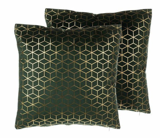 Výjimečně měkké polštáře budou dokonalým doplňkem každé pohovky, křesla nebo postele. Jejich poutavý design s geometrickými vzory ve zlatém provedení na tmavě zeleném sametovém povrchu jistě ozdobí každý interiér. Tyto dekorativní a praktické doplňky jsou ideální do interiérů v moderním, ale také tradičním stylu.