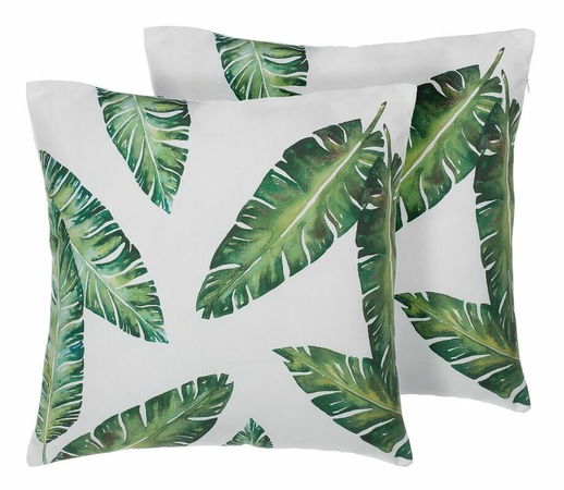 Zkrášlete vzhled vašeho interiéru umístěním těchto polštářů na pohovku, křeslo či postel. Čtvercové polštáře s trendovým potiskem palmových listů výborně doplní interiér v přímořském nebo boho stylu. Oba polštáře mají snímatelné potahy s praktickým zipem.