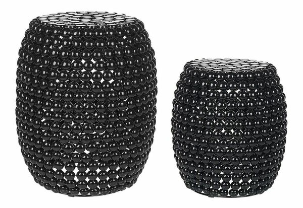 Tato sada stolů skutečně upoutá pozornost. Jejich výjimečný vzhled bubnové základny pokryté černými korálky jistě zvýrazní design celého interiéru. Díky lehké kovové konstrukci se souprava snadno přenáší, ale při používání je stabilní.