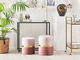 Zkrášlete svůj interiér touto sadou retro taburetek. Obě jsou čalouněné vysoce kvalitním sametem, snadno se udržují a mají dlouhou životnost. Zajímavá kombinace růžových odstínů je doplněna zlatou lištou uprostřed, čímž se jedinečný design taburetek posouvá na vyšší úroveň. Odkládací přihrádky skryté pod víkem sedadla umožňují snadné uložení nepotřebných předmětů nebo malých polštářů.