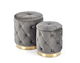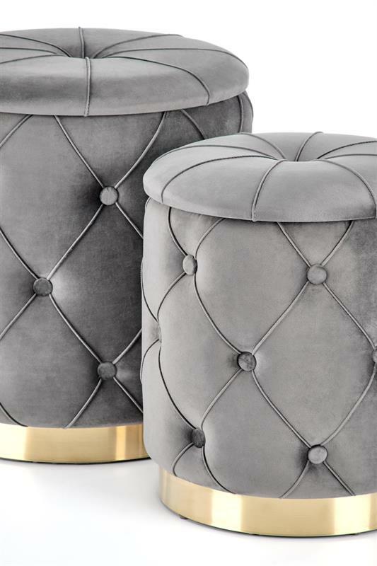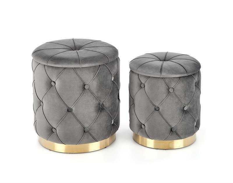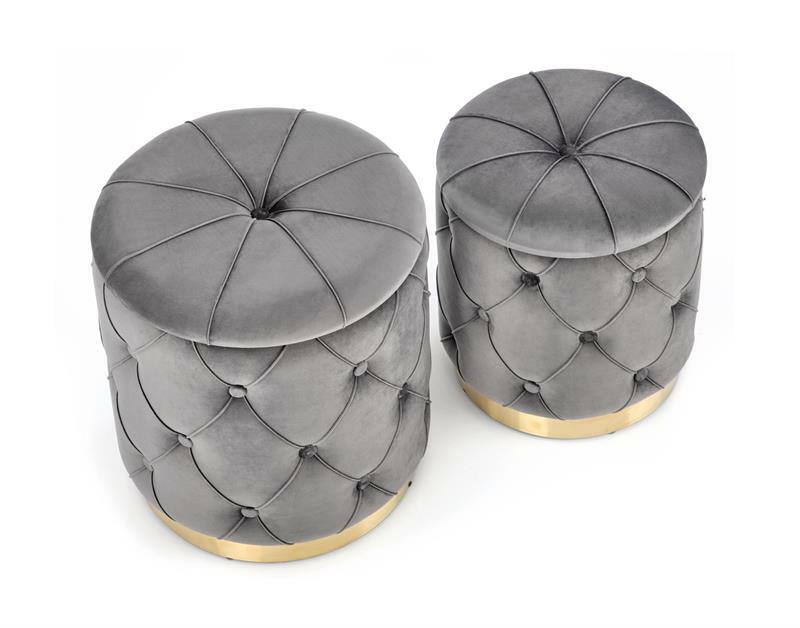 Set 2 ks. taburetek Phillis (šedá) jsou skvělým doplňkem interiéru vašeho domova. Jsou vyrobeny z kvalitních materiálů, sametové látky a chromované oceli, zaručujících jejich funkčnost a odolnost. Větší taburetka má rozměry 44 x 40 x 40 cm a menší 38 x 33 x 33 cm, takže se snadno přizpůsobí různým velikostem místnosti. Jejich elegantní design v šedé barvě s pozlátkovými detaily přinese do vašeho interiéru moderní a sofistikovaný vzhled. Tyto taburetky jsou ideální volbou pro ty, kteří hledají pohodlné a praktické řešení pro sezení a zároveň chtějí ozvláštnit svůj domov.