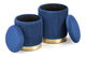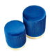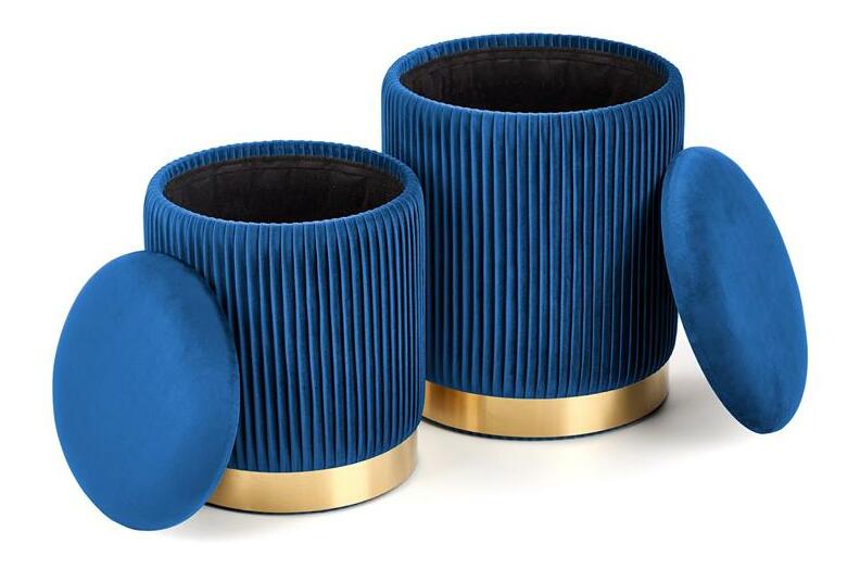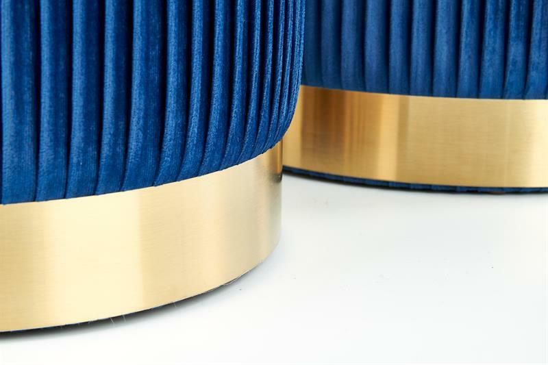Set 2 ks. taburetek Solo (tmavě modrá) Tmavě modrá + Zlatá je skvělým doplňkem do vašeho interiéru. Vyrobeno z kvalitní sametové látky a chromované oceli zaručují vysokou odolnost a dlouhou životnost. V balení jsou 2 kusy taburetek - větší o šířce 36 cm a menší o šířce 31 cm. Obojí mají výšku 44 cm, resp. 38 cm a jsou vhodné nejen k posezení, ale také jako praktické stolky. Tmavě modré barvy jsou elegantní a zároveň působí moderním dojmem. Všechny tyto faktory dělají z tohoto setu ideální výběr pro ty, kteří hledají kvalitu a styl za rozumnou cenu.