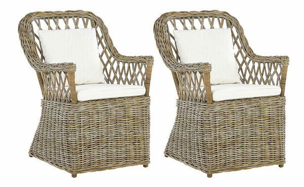 Pokud toužíte po komfortním sezení, tato nádherná ratanová křesla jsou pro vás ideální volbou. Jsou vyrobeny z přírodního ratanu a využití najdou v jakémkoli prostoru. Ratanový výplet v boho stylu vynikne v obývacím pokoji nebo na terase a prostoru dodá rustikální nádech. Bavlněné polštáře na sezení poskytují maximální pohodlí při sezení a ochranné podložky na nohou ochrání podlahu před vznikem škrábanců.