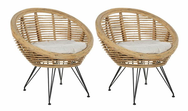Osvěžte svůj domov pomocí těchto univerzálních ratanových křesel inspirovaných boho stylem, které dokonale vyniknou v každém prostoru. Černé železné nohy jsou zárukou pevné a stabilní konstrukce, která zajišťuje dlouhou životnost. Pohodlně se posaďte na měkké bavlněné polštáře, které dokonale doplňují vzhled křesel a užijte si komfortní sezení. Jejich design v boho stylu nádherně doplní vzhled jakéhokoli prostoru.