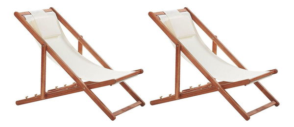 Tato multifunkční lehátka s klasickým designem jsou dokonalým doplňkem pro letní sezónu. Jelikož jsou skládací, lze je jednoduše přemístit nebo vzít s sebou na zahradu nebo dokonce i na pláž. Polohovatelná opěradla lze nastavit do tří poloh pro maximální komfort a pohodlí. Látkové potahy jsou zavěšeny na pevných rámech z akáciového dřeva. Součástí balení jsou odolné jednobarevné potahy s měkkým polštářkem a dva náhradní potahy s trendovým vzorem, díky kterým můžete změnit vzhled lehátek a oživit svůj vnější prostor novými barvami.