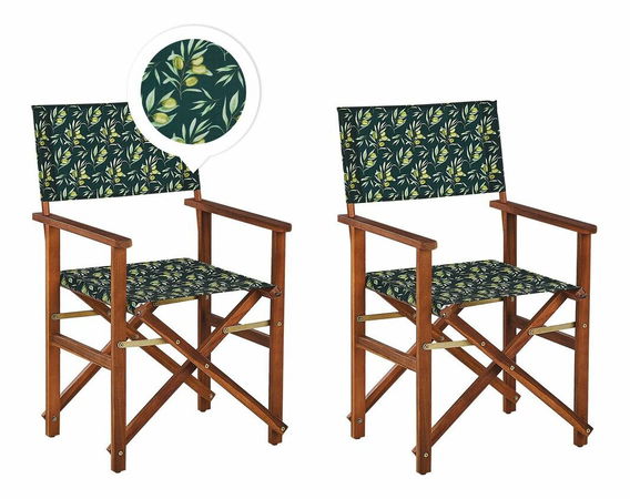 Set 2 ks zahradních lehátek s náhradními potahy Ciala (tmavé akáciové dřevo + vzor oliv)