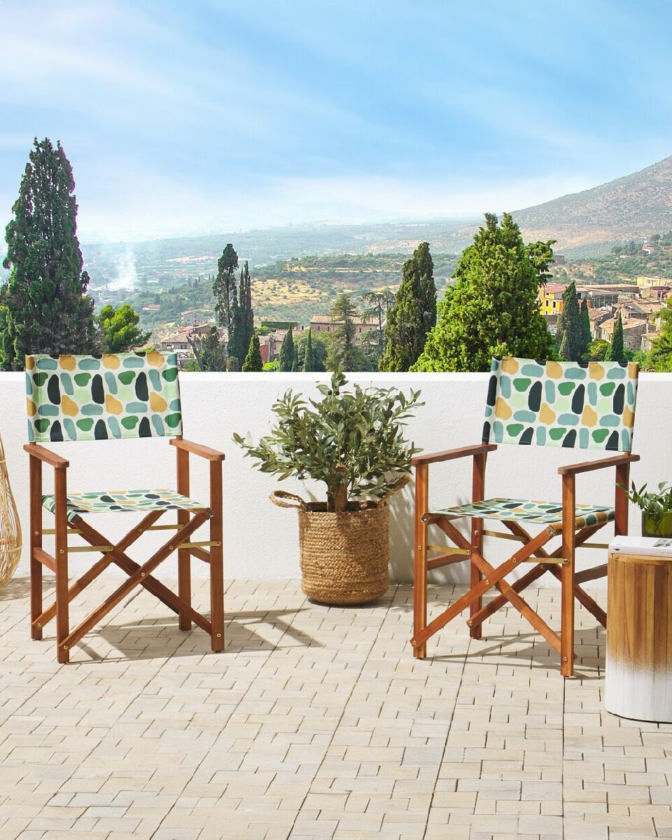 Židle navržené v klasickém designu budou praktickým doplňkem vaší sestavy zahradního nábytku. Díky nízké hmotnosti a skládací funkci je můžete využít nejen na terase, ale také během výletu na pláž nebo pikniku v parku. Rám židlí je vyroben z akáciového dřeva vhodného do každého počasí, které zaručuje stabilitu ai po letech používání bude vypadat jako nové. Obě židle mají univerzální látkový potah a náhradní barevný látkový potah se vzorem, díky kterému můžete změnit vzhled židlí podle přání nebo nálady. Když židle nepotřebujete, můžete je jednoduše sundat, abyste ušetřili místo.