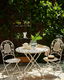 Dodejte svému balkonu nebo zahradě provensálskou atmosféru s touto elegantní sadou dvou židlí. Jsou vyrobeny ze železa s práškovým lakováním a vyznačují se opotřebovaným, vintage efektem a ozdobným designem s květinovými ornamenty. Doplňte je odpovídajícím stolkem a vytvořte si dokonalý prostor k snídani nebo obědu v jakémkoli venkovním prostředí. Židle jsou skládací, takže je mimo sezónu můžete jednoduše uskladnit.