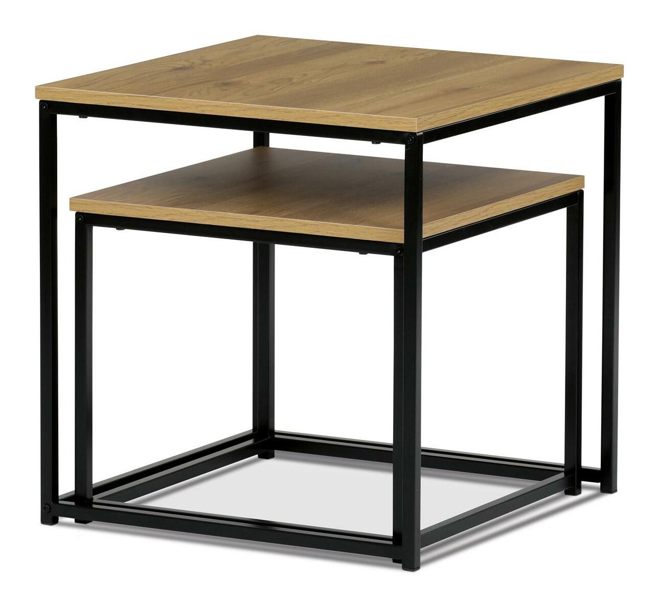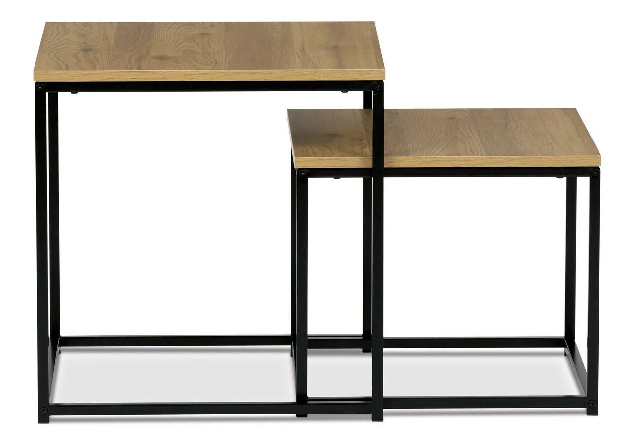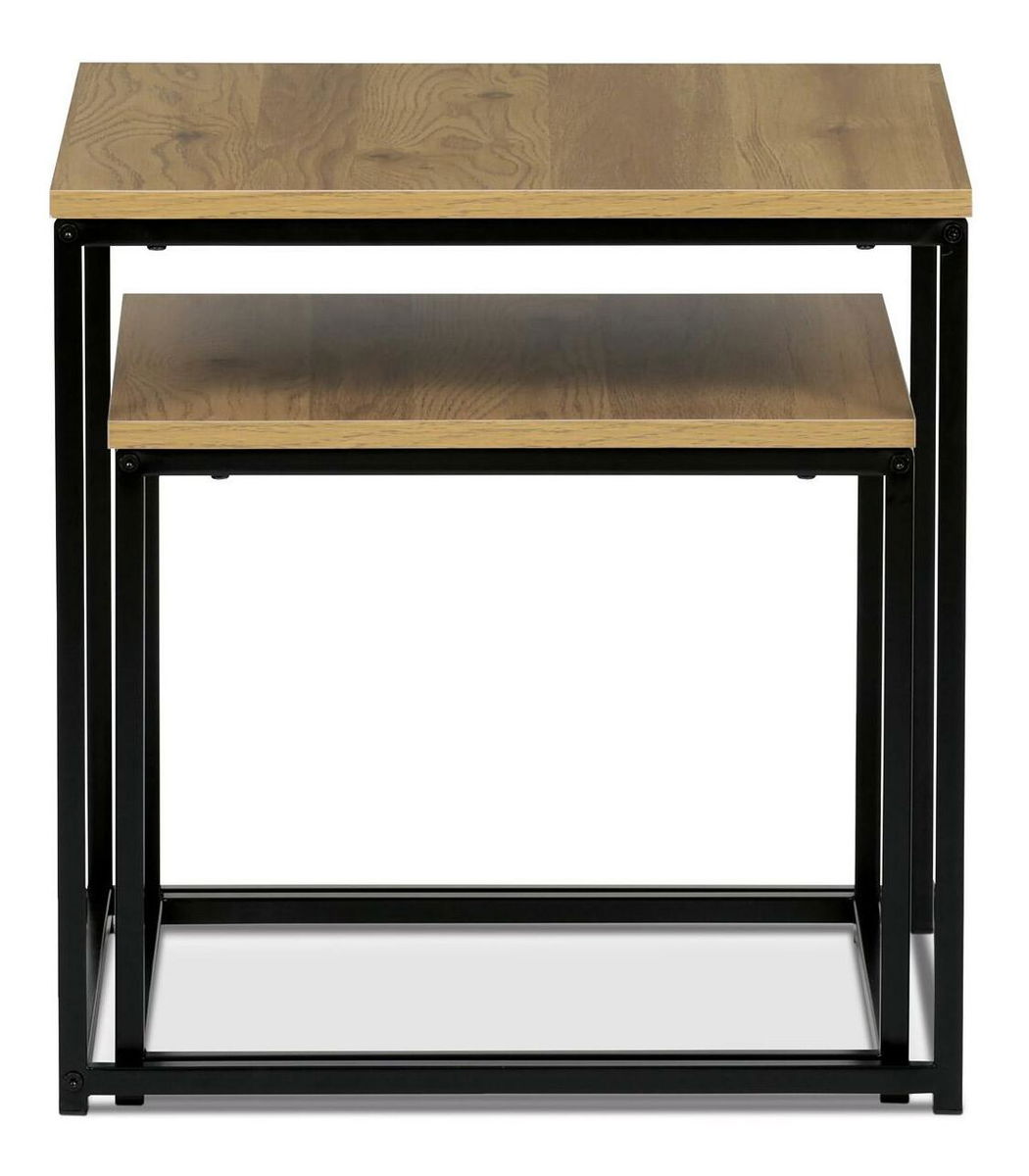 Sada 2 odkládacích stolků je mnohem více než obyčejné odkládací stolky - ztělesňuje harmonii praktičnosti, stylu a sofistikovanosti. Tyto stolky s dekorem divokého dubu, který zdobí jejich robustní povrch z materiálu MDF, poskytují vynikající kombinaci estetického potěšení a funkčnosti pro každé prostředí. Deska stolku dokresluje přírodní vibrace dekoru divokého dubu a dodá vašemu pokoji nebo kanceláři klidnou atmosféru. Inspirace designu vychází z motivů industriálního stylu. Stoly se pyšní černýma kovovými nohama kruhového tvaru, které nejen zajišťují stabilitu, ale také přispívají k odvážnému a průkopnickému vizuálnímu dojmu ze soupravy. Deska čtvercového tvaru poskytuje velkorysý úložný prostor a zároveň vyzařuje moderní a špičkový vzhled. Ať už zařizujete firemní prostory, nebo zvelebujete svůj domov, tyto univerzální kousk yzaručeně skvěle uspokojí vaše potřeby.