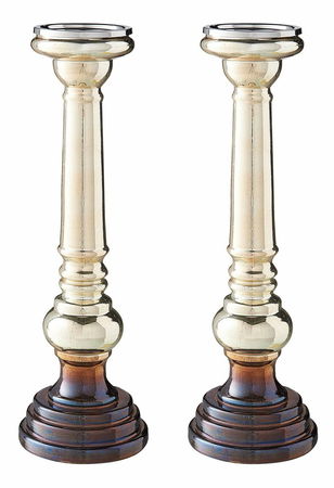 Vylepšete vzhled svého interiéru s těmito elegantními svícny inspirovanými viktoriánským stylem. Jsou vyrobeny z hrubého skla a díky svému tvaru a kombinaci zlaté barvy s barevným efektem se stanou středem pozornosti.