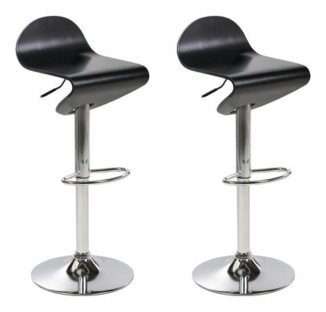Tato nádherná sada barových židlí dodá jakémukoli prostoru styl. Sedadla, ve tvaru písmene S, jsou vyrobena ze dřeva v černém odstínu. Židle jsou vybaveny stabilní opěrkou nohou, pneumatickým plynovým zvedákem, který zajišťuje pohodlné nastavení výšky sedáku, a 360° mechanismem otáčení. Stabilní, chromované podstavce dotváří celkový elegantní vzhled této soupravy ve stylu mid-century.