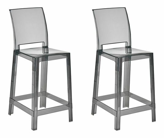 Pohodlně se usaďte u pultu kuchyňského ostrůvku na těchto stylových barových židlích. Tyto židle s výjimečným designem jistě upoutají pozornost vašich hostů. Jejich průhledná konstrukce z odolného syntetického materiálu vytváří jedinečný efekt, který pěkně doplní moderní nebo minimalistický interiér. Profilovaná opěradla a vestavné opěrky nohou výrazně zvyšují komfort během používání.