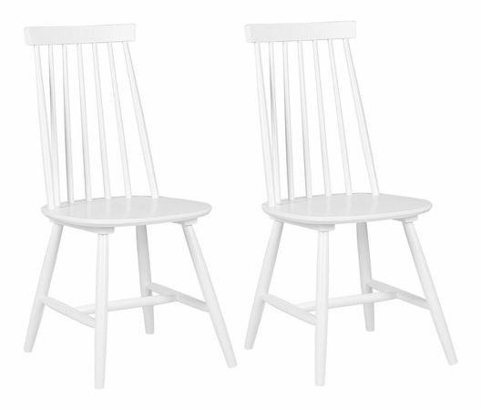 Přineste do interiéru minimalismus v podobě těchto odolných a elegantních dřevěných židlí. Židle jsou vyrobeny z odolného masivního dřeva s lesklým bílým nátěrem. Široké sedátko je doplněno šikmým lamelovým opěradlem, které dodává tomuto klasickému designu šmrnc a vytváří vzhled inspirovaný skandinávským stylem. Zkombinujte je se stolem v jídelně, nebo je použijte jako samostatný doplněk v kuchyni či obýváku.