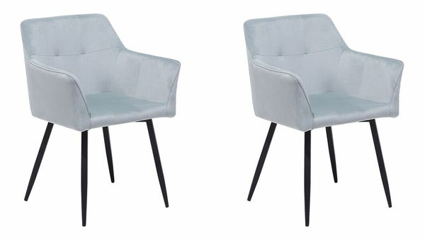 Minimalistický a zároveň luxusní design židlí zaujme svým neobvyklým nadčasovým vzhledem. Jemné linie židlí podtrhuje šedé sametové čalounění s prošívanými detaily. Hladká textura a světlý pastelový odstín čalounění osvěží jakoukoli místnost a zjemní vzhled interiéru zařízeného v tmavých barvách. Židle se štíhlýma kovovými nohama se hodí k jídelnímu stolu, ale i do ložnice či domácí knihovny.
