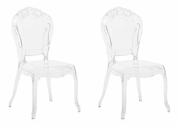 Rozmarná interpretace klasického francouzského stylu je skvělým doplňkem každého jídelny nebo obývacího pokoje. Židle jsou vyrobeny z vysoce kvalitního materiálu, jsou robustní a trvanlivé a přesto působí lehce a vzdušně. Průhledné provedení a ozdobný design vytváří dokonalou kombinaci vhodnou do moderních interiérů nebo interiérů inspirovaných stylem vintage.