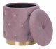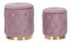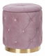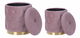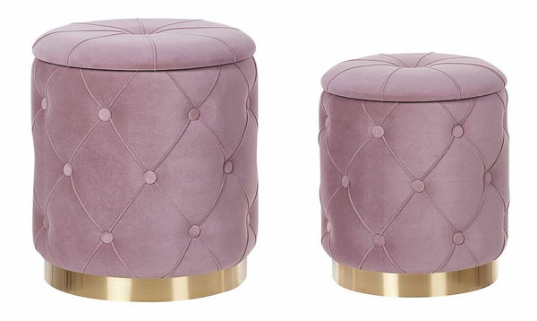 Dodejte svému interiéru retro nádech pomocí této sady sametových úložných taburetek. Růžová barva v kombinaci se zlatým podstavcem vypadá velmi efektně. Jedinečný design je podtržen prošíváním s knoflíky a hrubšími textilními nitěmi, které na povrchu vytvářejí vzor ve tvaru diamantu. Prostorný úložný prostor skrytý pod víkem obou taburetek využijete k odkládání menších přikrývek a polštářů.