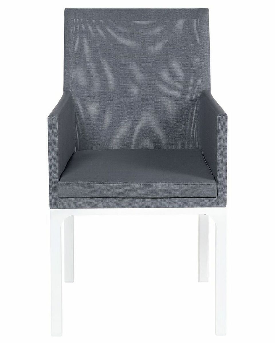 Hliníková souprava zahradních židlí v klasickém designu a neutrální barvě, která se dobře hodí k jakémukoli venkovnímu zařízení. Židle s pohodlnými područkami a vysokým opěradlem zaručují jedinečné pohodlí. Sedadla jsou čalouněna odolným syntetickým materiálem odolným vůči UV záření a dodávají se s tlustými polštáři s potahy odolnými vůči vodě.