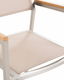 Tato sada zahradních židlí je ideální volbou na terasu nebo do zahrady. Rám židlí je vyroben z odolné oceli, která zaručuje stabilitu, a dřevěné detaily na opěrkách rukou vás ochrání před chladnou kovovou konstrukcí. Sedák a opěradlo jsou vyrobeny z béžové textilní látky, která je zárukou maximálního komfortu.