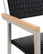 Tato sada zahradních židlí je ideální volbou na terasu nebo do zahrady. Rám židlí je vyroben z odolné oceli, která zaručuje stabilitu, a dřevěné detaily na opěrkách rukou vás ochrání před chladnou kovovou konstrukcí. Sedák a opěradlo jsou vyrobeny z černého umělého ratanu, který je zárukou maximálního komfortu.