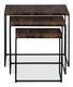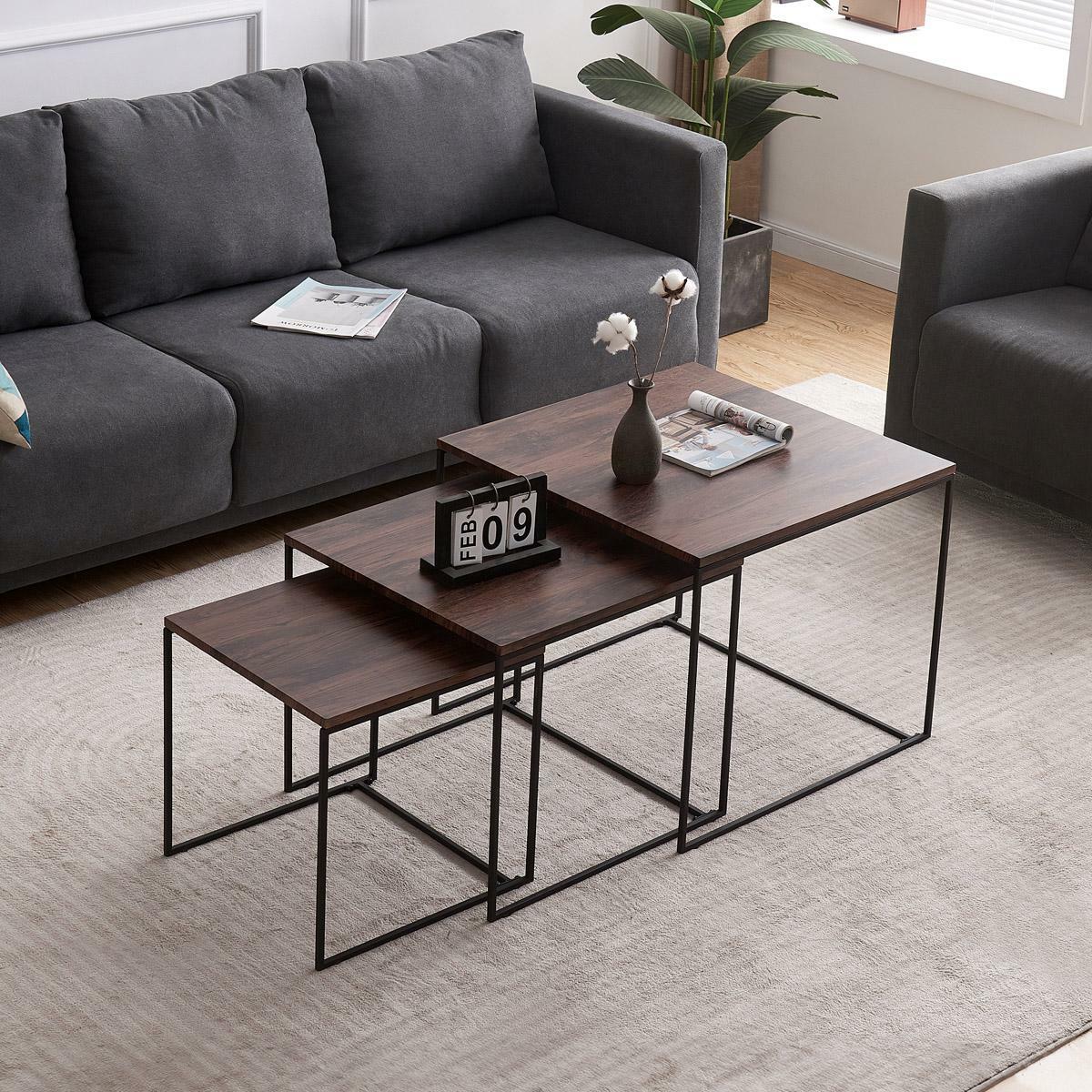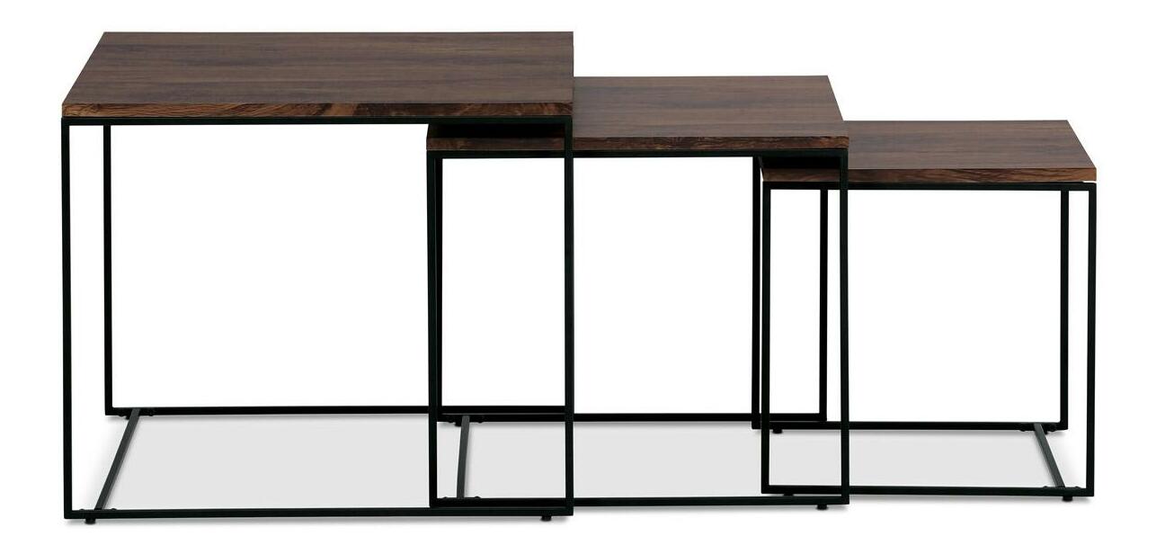Tato sada konferenčních stolků pozvedne díky své industriální estetice jakýkoli prostor a bez problémů se začlení do kancelářských salonků, konferenčních místností nebo do srdce vašeho obývacího pokoje. Jeho čtvercová deska z MDF, zdobená sytým dekorem ořechu, v sobě snoubí odolnost se stylovým vkusem, díky čemuž vynikne jako výrazný kousek uprostřed jakéhokoli interiéru. Hnědý odstín desky stolu elegantně kontrastuje s kruhovými černými kovovými nohami, které tvoří pevný základ, který potvrzuje spolehlivost i noblesu. Tato sada tří stolů ztělesňuje praktičnost a všestrannost a je navržena tak, aby vyhovovala podnikům, které hledají nábytek, který se přizpůsobí jejich neustále se vyvíjejícím potřebám. Ať už se tyto stoly používají společně k rozsáhlému konferenčnímu uspořádání, nebo jednotlivě ke zvýraznění útulných kancelářských zákoutí, nabízejí bezkonkurenční flexibilitu. Jejich povrchy mají nejen majestátní vzhled, ale také se vyjímečně snadno udržují, takže jsou ideální pro rušné prostředí, kde je čas drahý. Kolekce konferenčních stolků navíc přináší komfort a pohodlí, aniž by to bylo na úkor stylu. Industriální design vtiskne každé místnosti charakter a zajistí, že se tyto stolky stanou středem pozornosti, ať už je umístíte kamkoli. Kromě jejich vizuální přitažlivosti jsou díky praktickým rozměrům a snadnému přemisťování v rámci jakéhokoli prostředí vynikající volbou pro každého, kdo chce svůj prostor obohatit o nábytek.