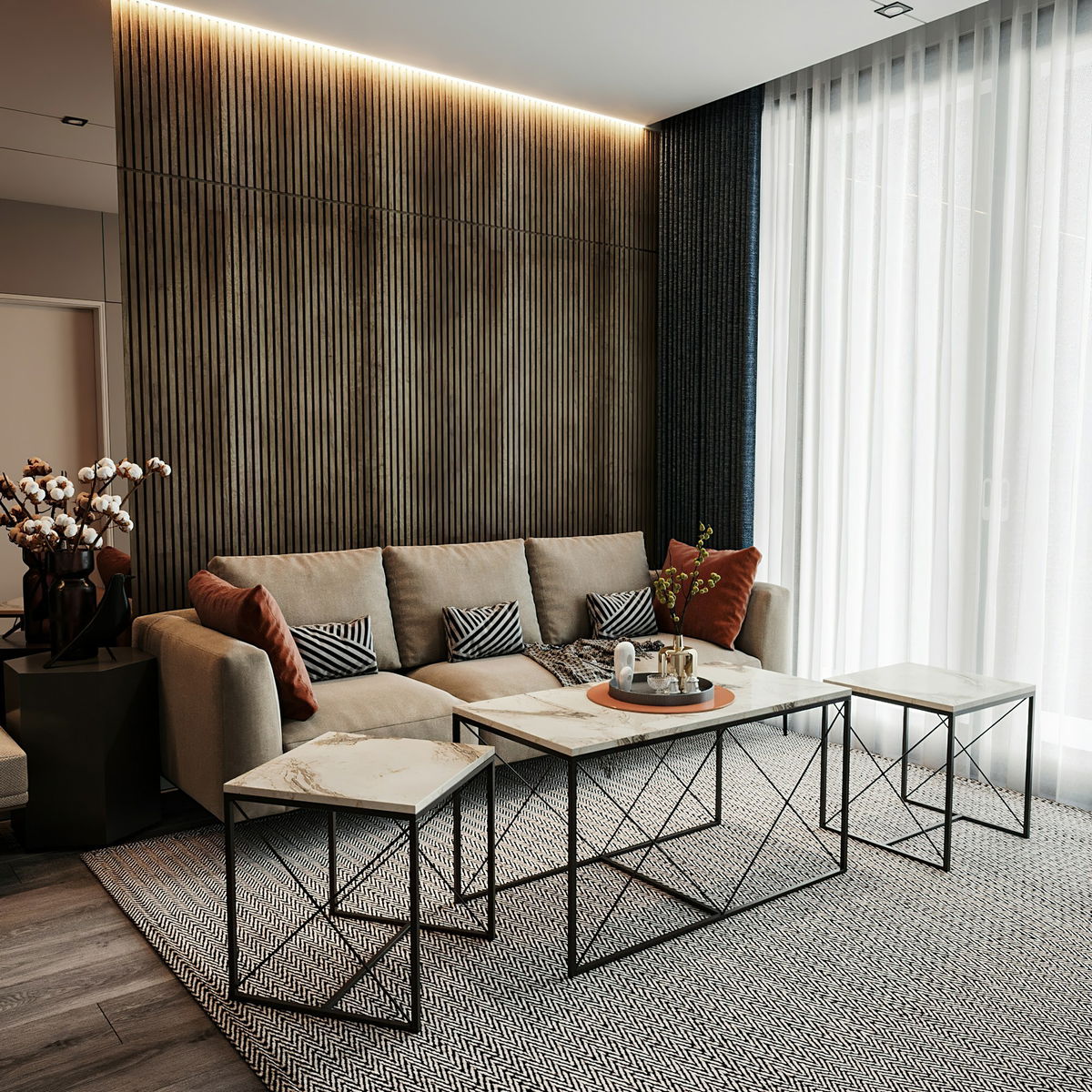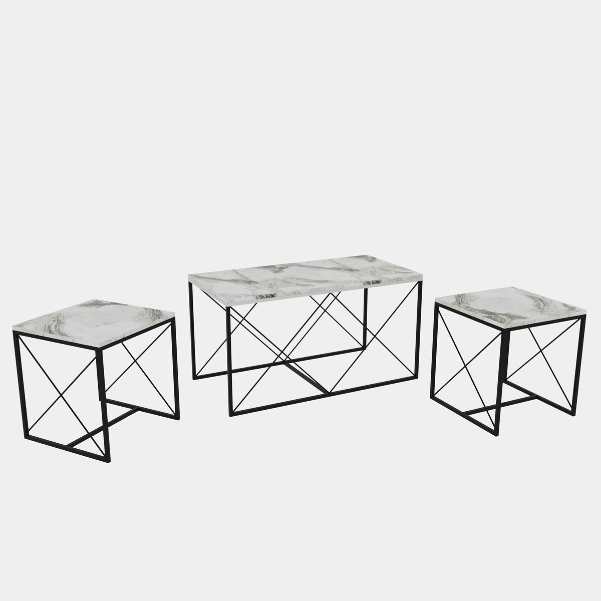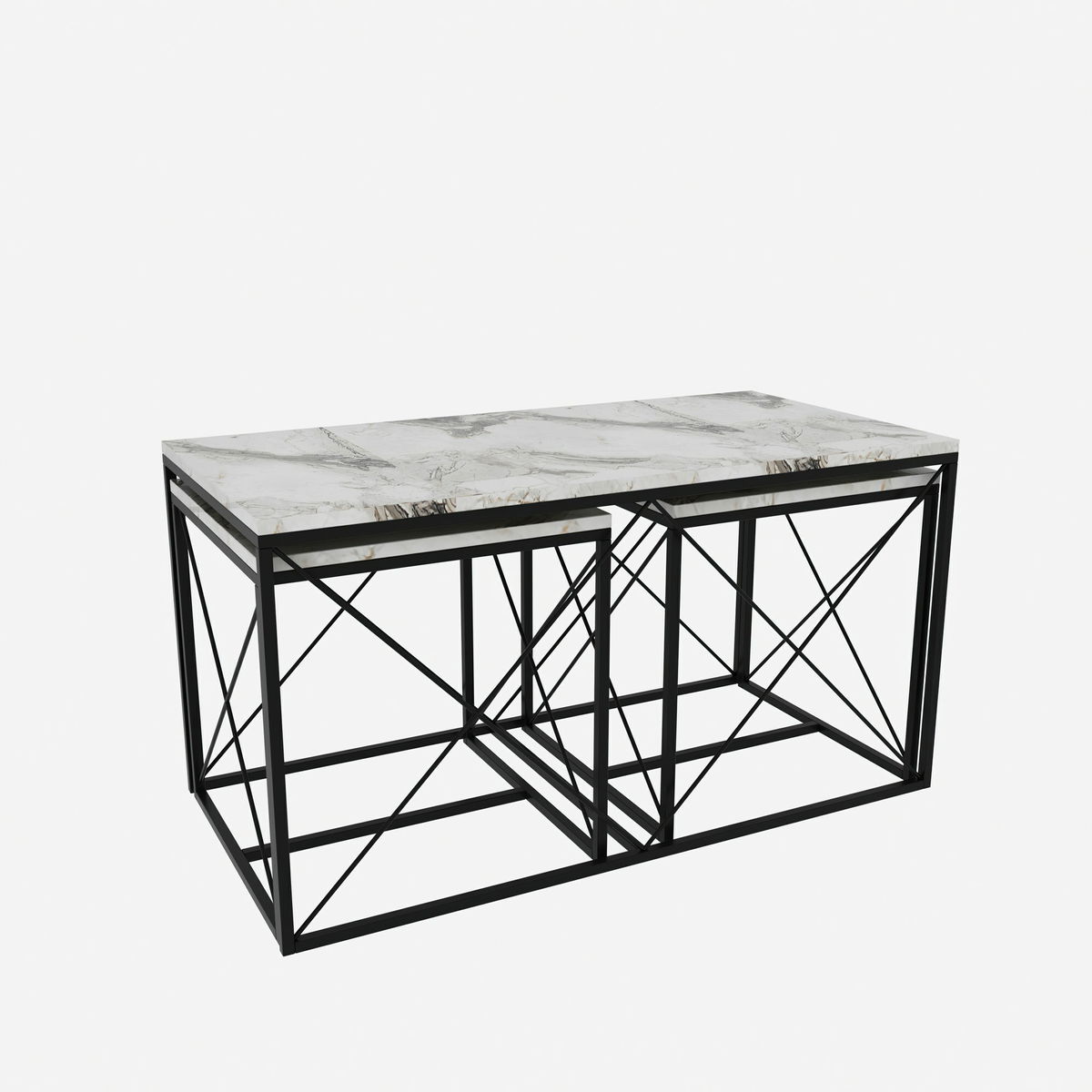 Set 3 konferenčních stolků Defenella (Bílý mramor + Černá)