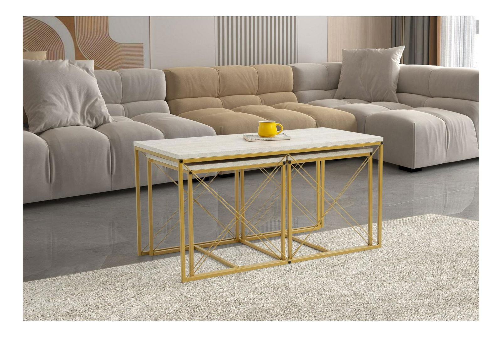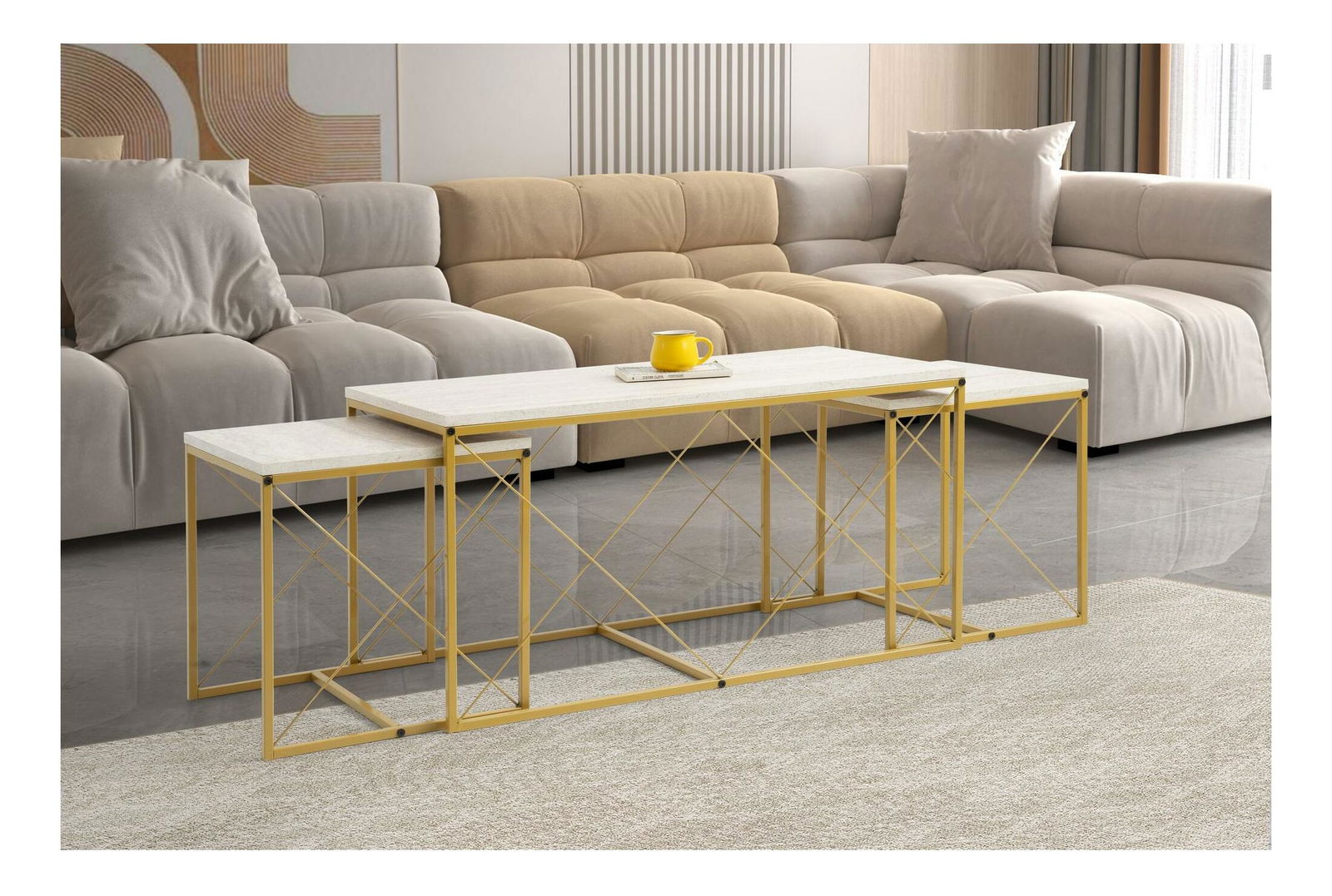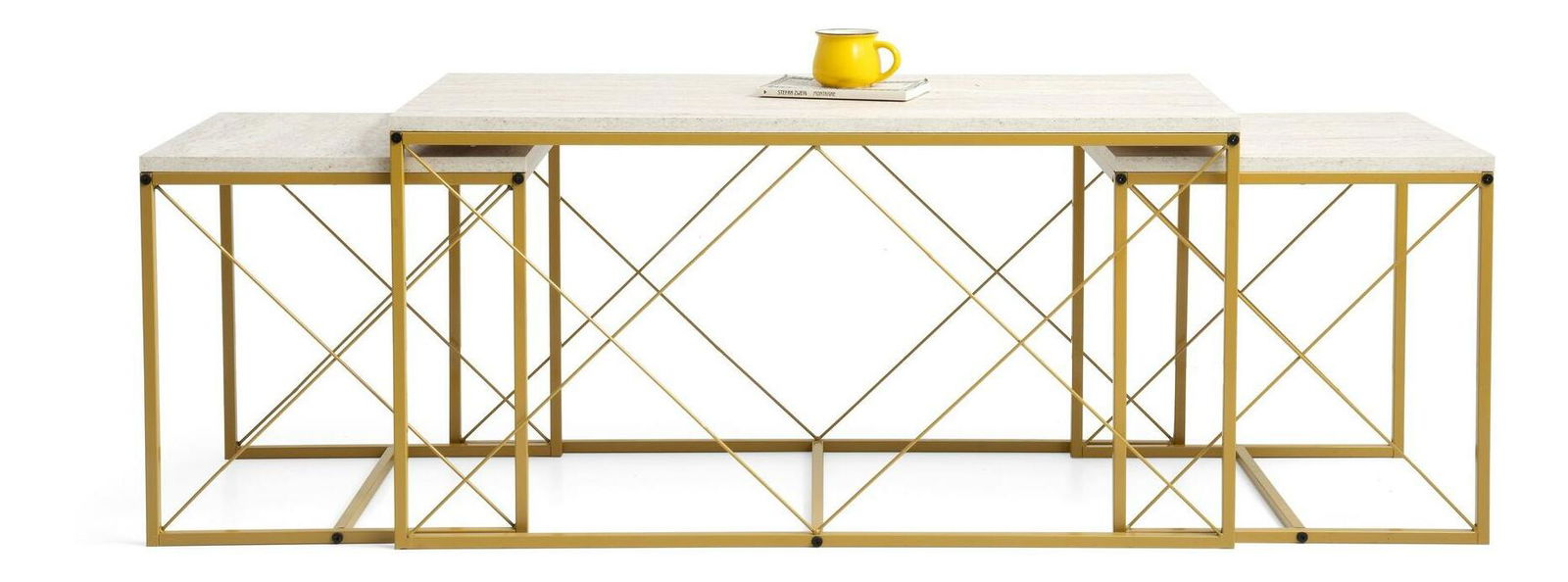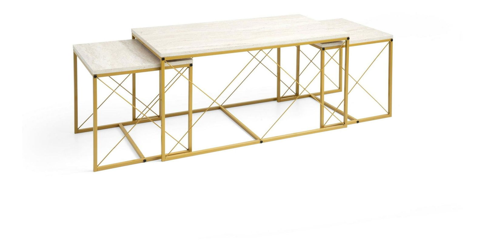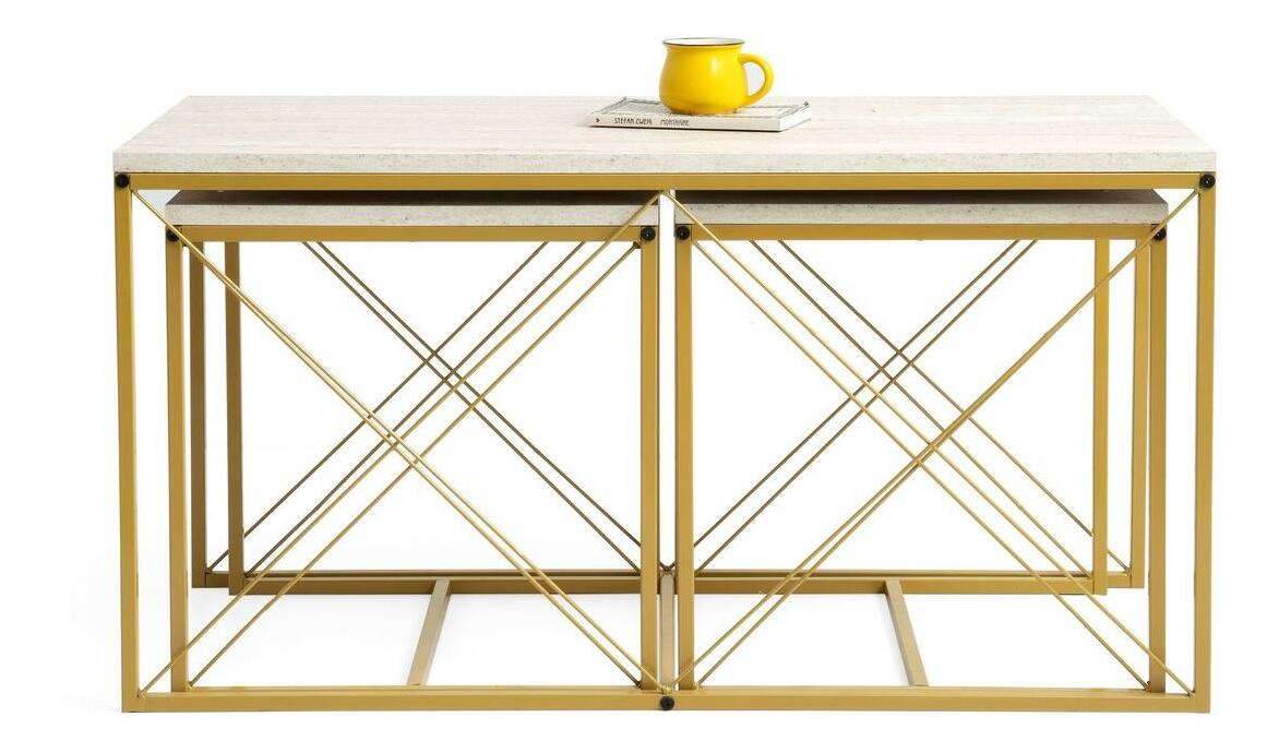 Set 3 konferenčních stolků Defenella (mramor + zlatá) *bazar