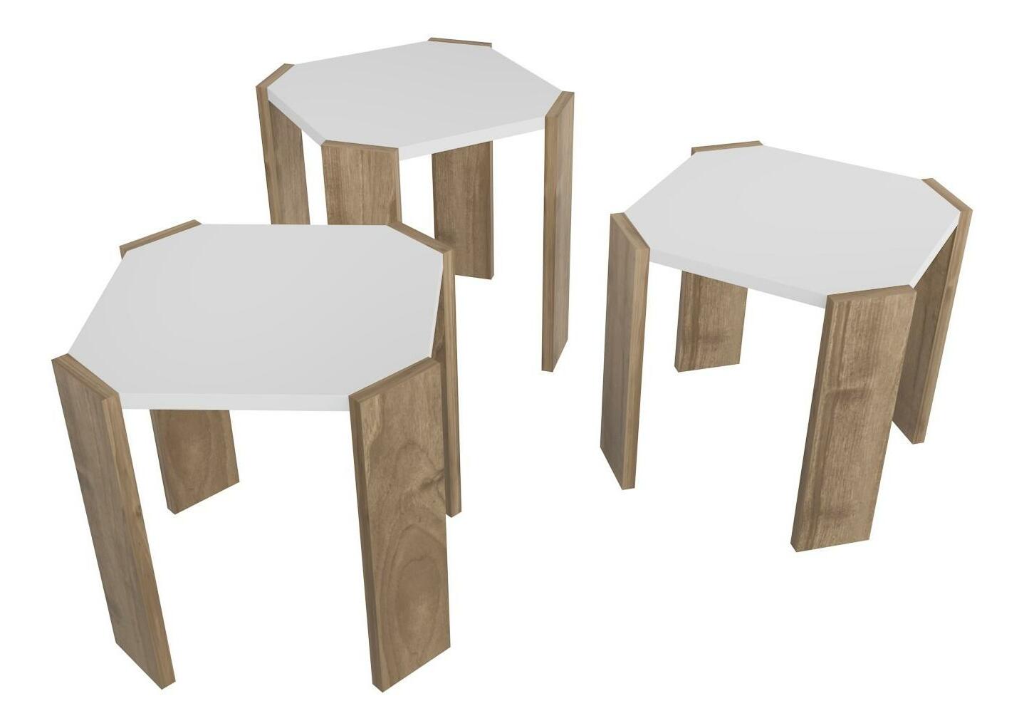Set 3 konferenčních stolků Lorizolla (bílá + ořech)