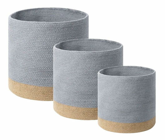 Tato sada 3 dvoubarevných košíků zvýrazní vzhled každé místnosti, do které ji umístíte. Díky ní získáte extra úložný prostor pro všechny potřebné věci, které potřebujete mít na dosah ruky. Košíky jsou ručně vyrobeny z bavlny a juty a jsou výjimečnou dekorací, která vnese do prostoru špetku přírodního designu. Umístíte-li je do obývacího pokoje, ložnice, dětského pokoje či dokonce koupelny, váš interiér bude uspořádán a přehledný.